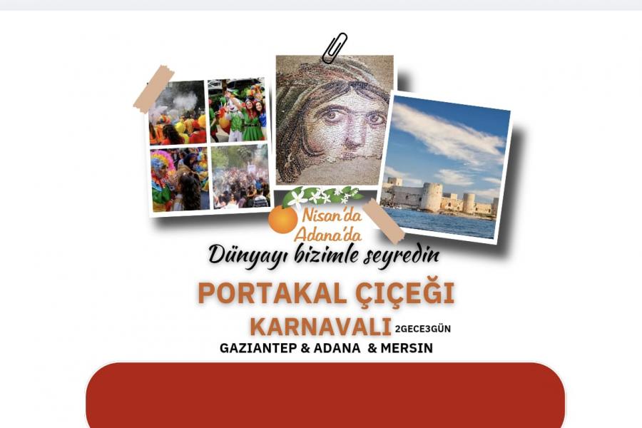 14.ULUSLARARASI ADANA PORTAKAL ÇİÇEĞİ KARNAVALI KORTEJ YÜRÜŞÜNÜ İZLEMEK ÜZERE yerimizi alıyoruz. Karnaval, süresince kentin hemen her yerinde; sokak gösterileri, dans gösterileri, üniversite müzik gruplarının konserleri, halk oyunları gösterileri, bando gösterileri spor müsabakaları gibi etkinliklerin yanı sıra ilginç kostümlü katılımcılarla son derece renkli ve keyifli Portakal çiçeği Karnavalını izleme, fotoğraf çekimi, dans, şarkılara eşlik ediyoruz. Portakal Çiçeğinin en güzel koktuğu sokaklardan geçerek karnaval alanında ki serbest zamanımızın tadını çıkarıyoruz. Serbest zaman sonrası Mersin e hareket , Mersine varışımızın ardından otelimize yerleşme .
